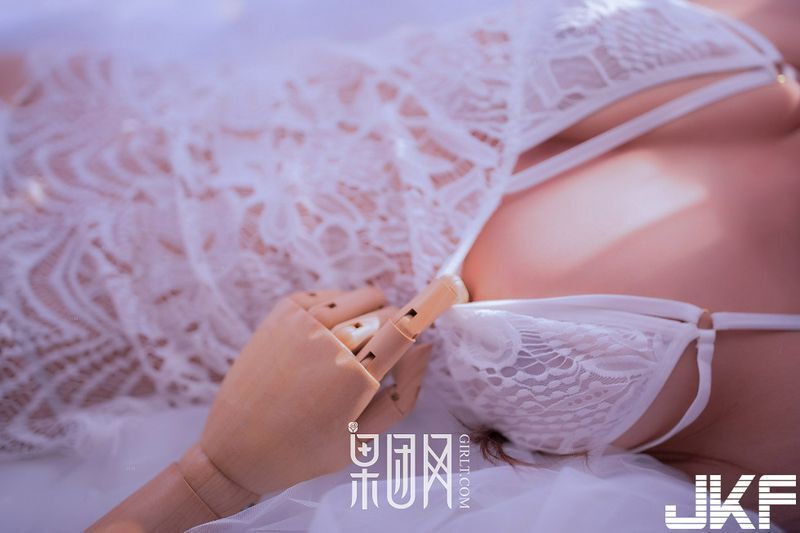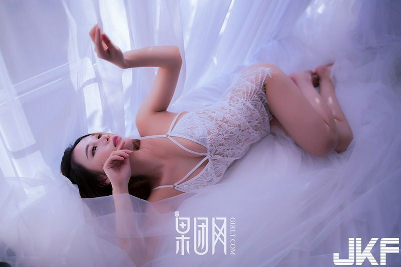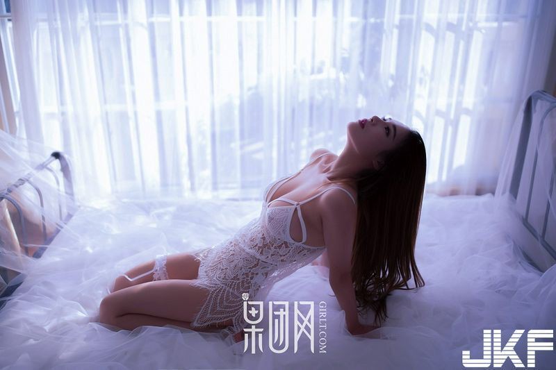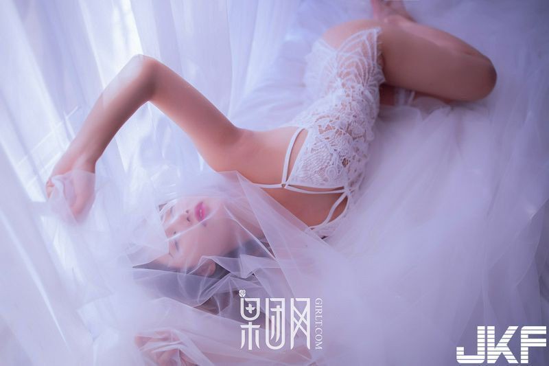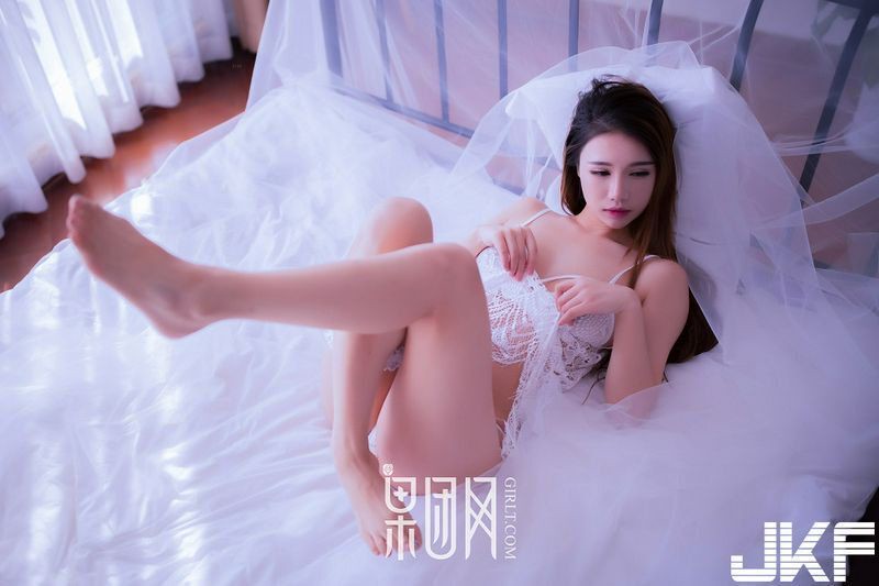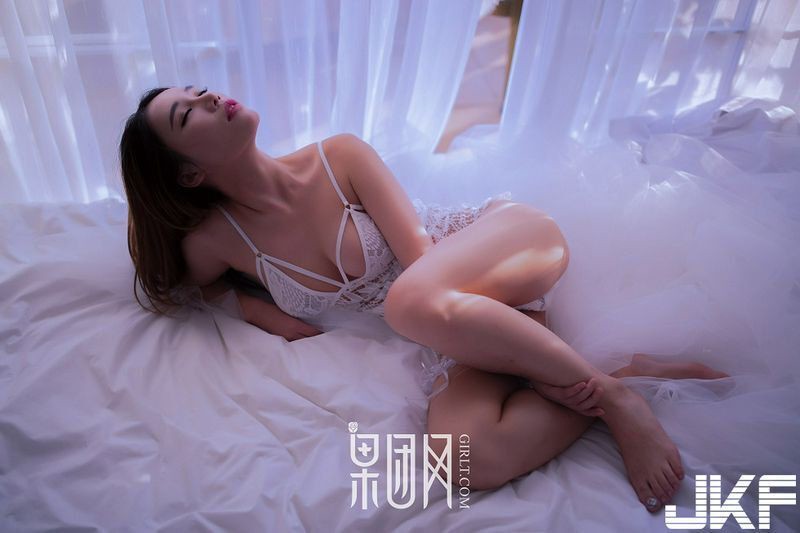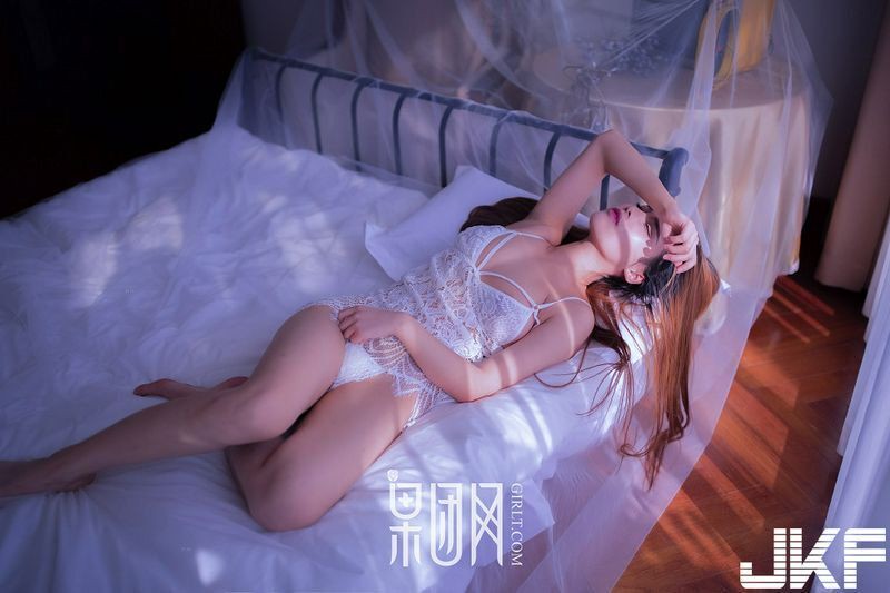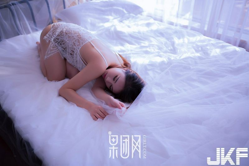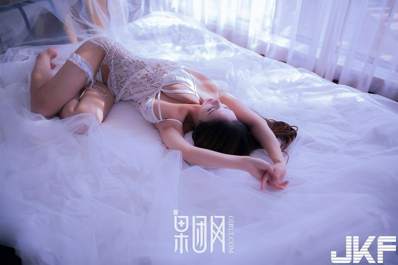 奶油少女居家床上白色缕空蕾丝内衣完美诱惑写真
