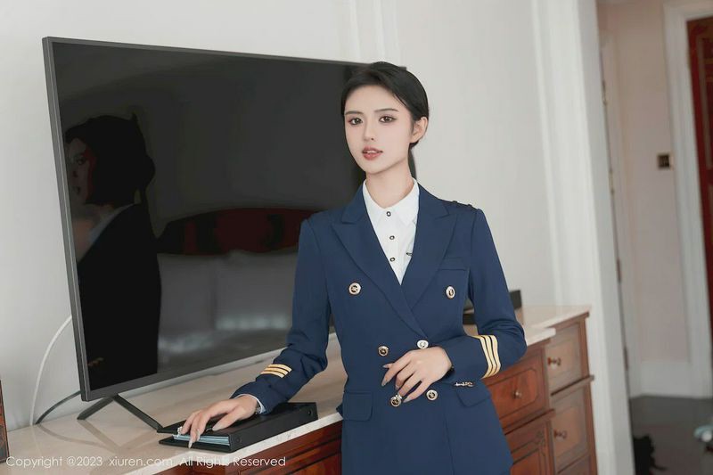 浅浅DANNY黑丝美腿搭配蓝色OL服饰装扮
