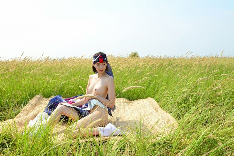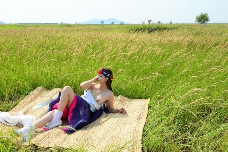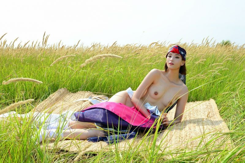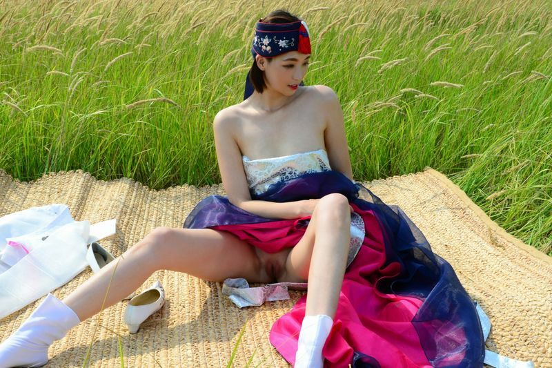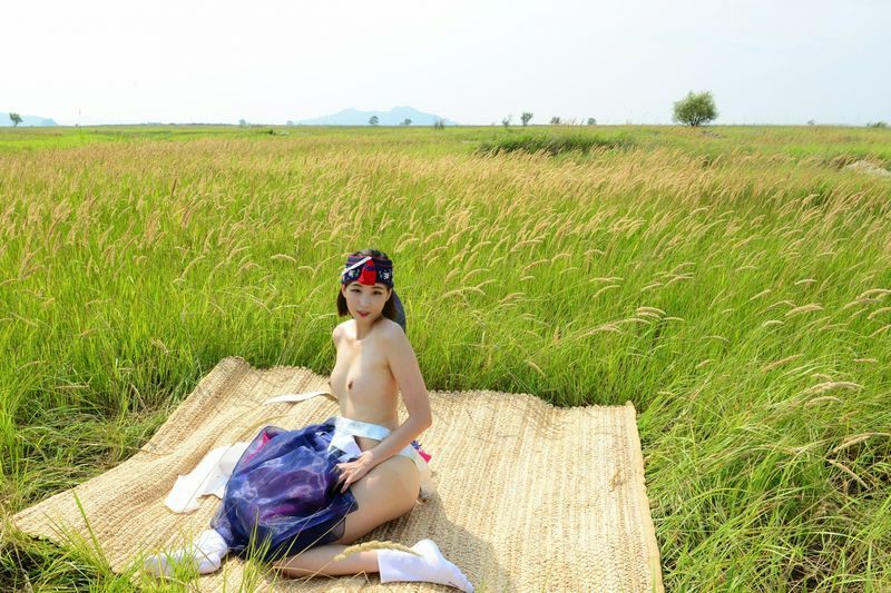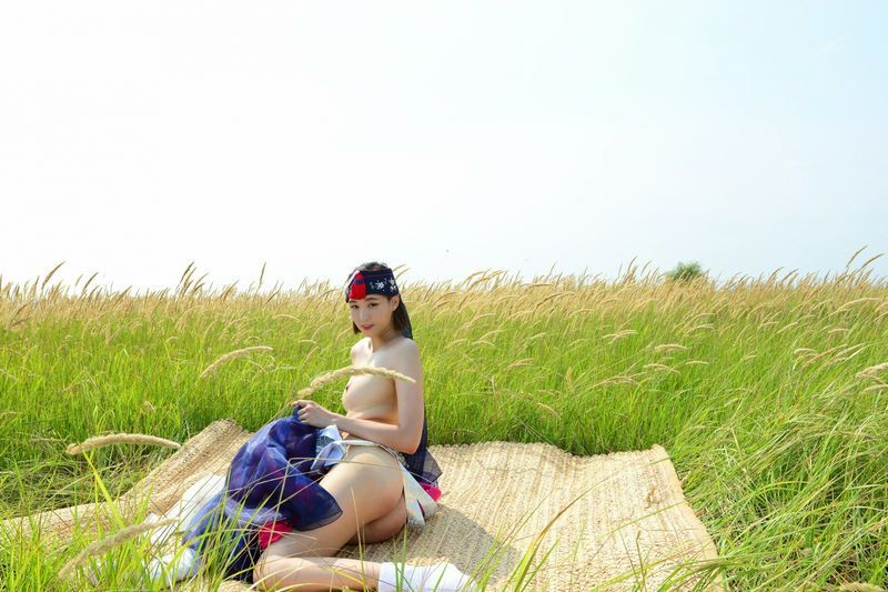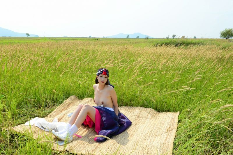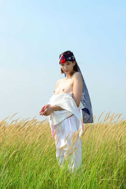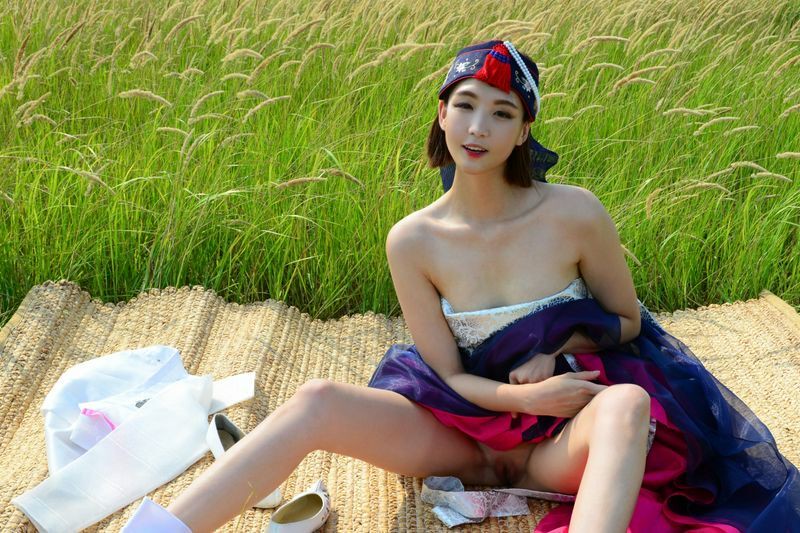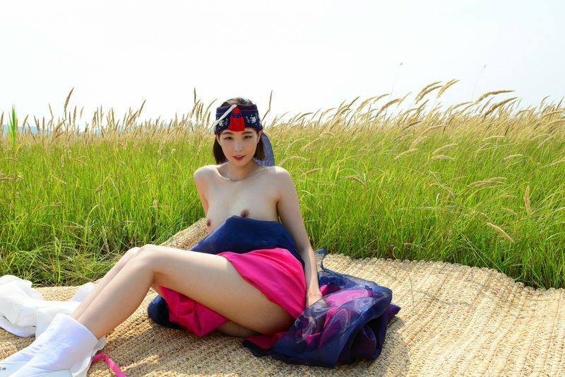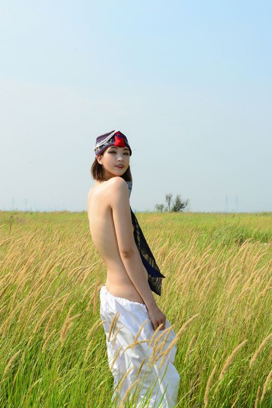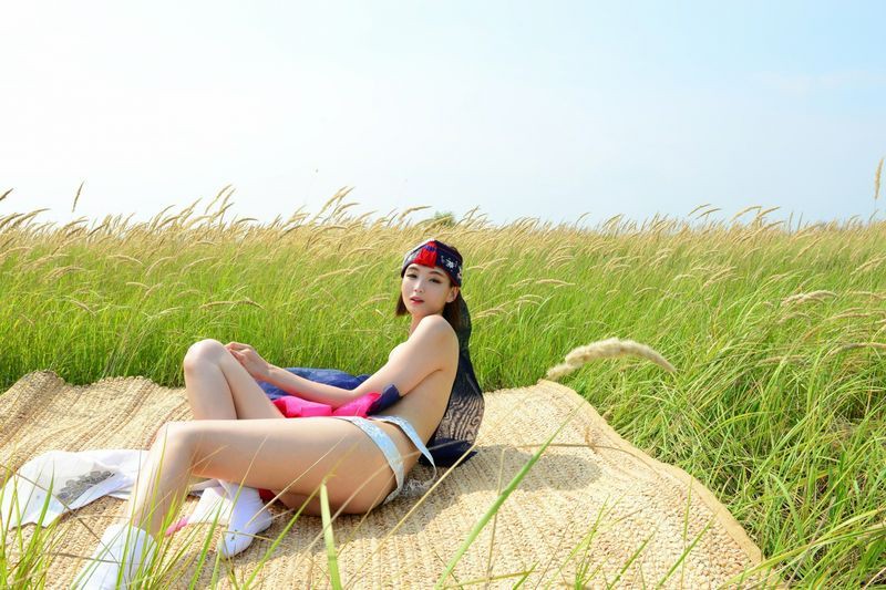 大尺度短髮清纯妹妹在草地漫步