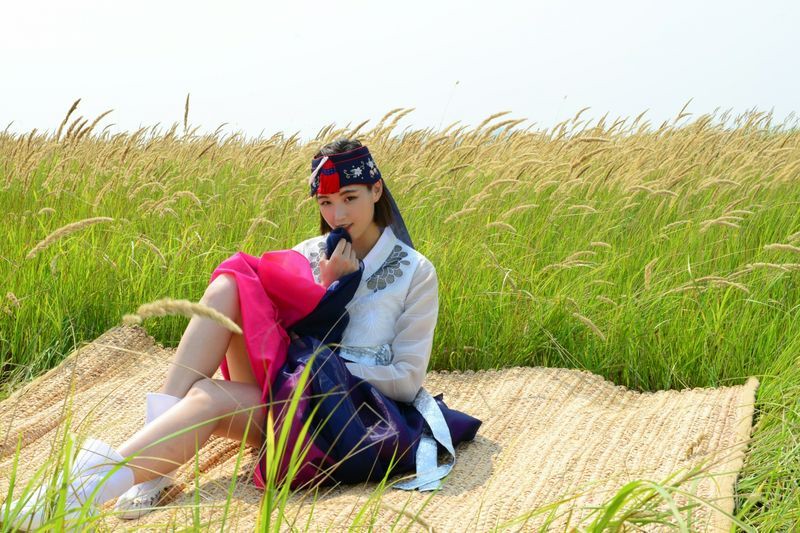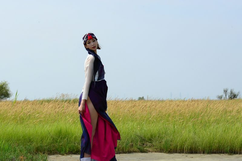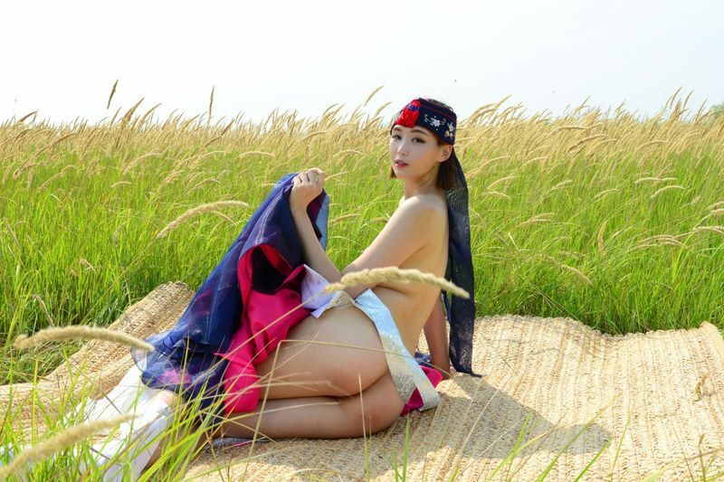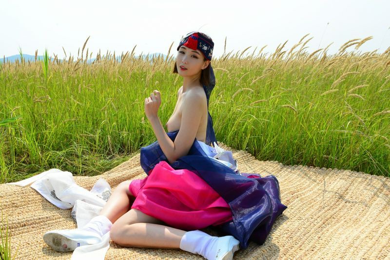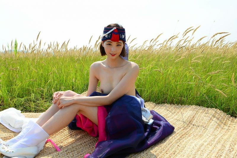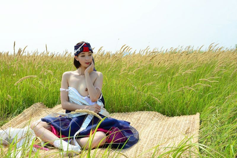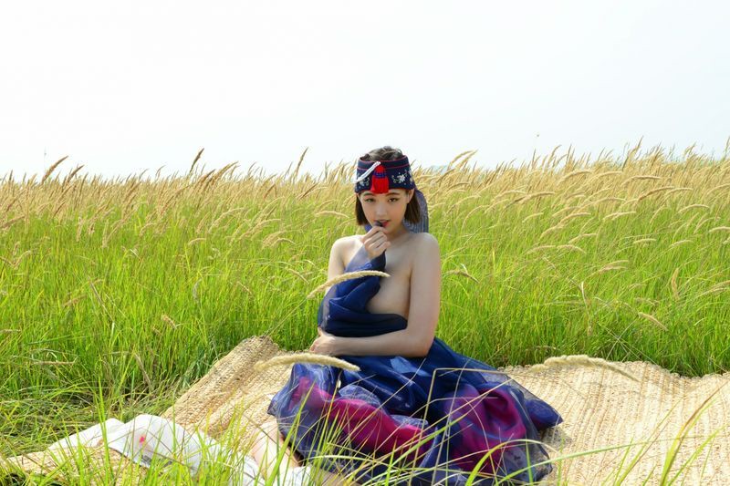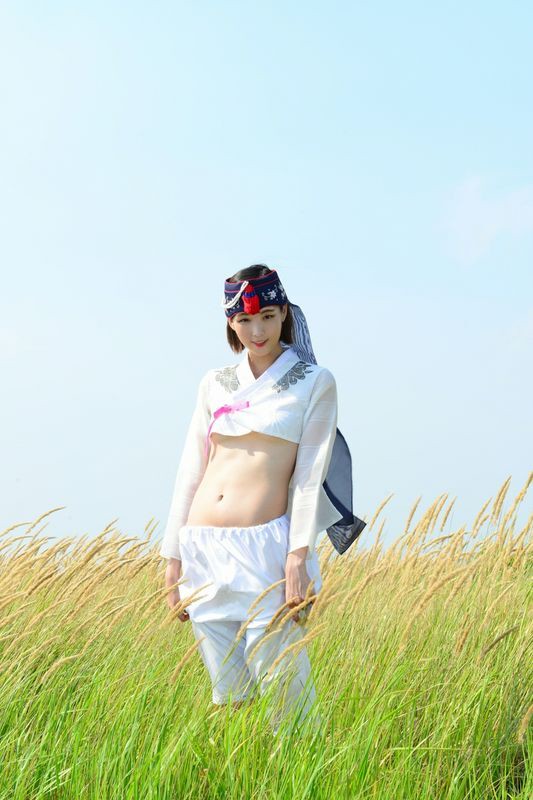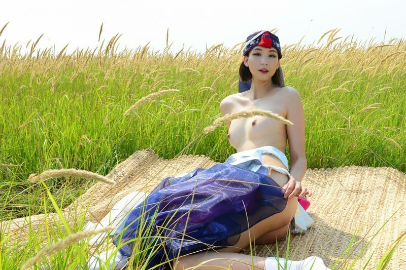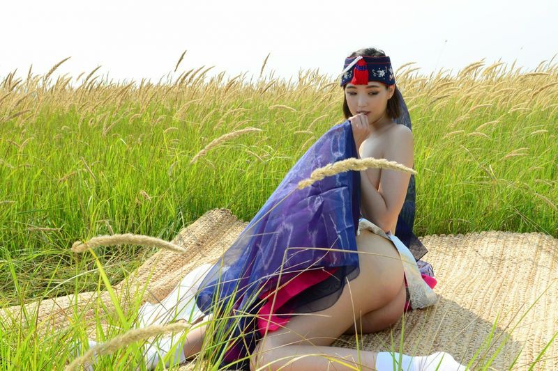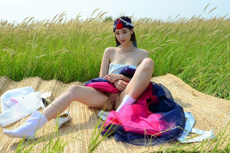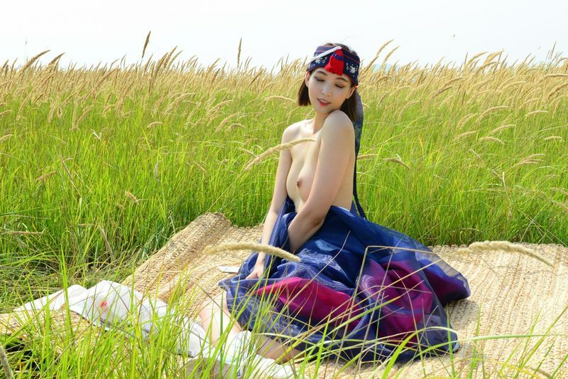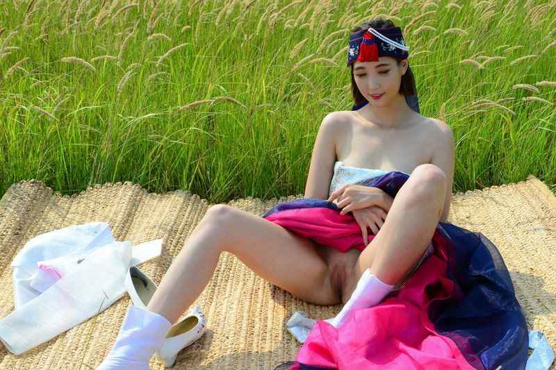 大尺度短髮清纯妹妹在草地漫步