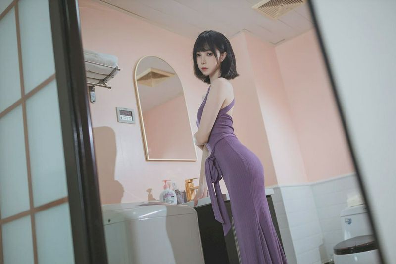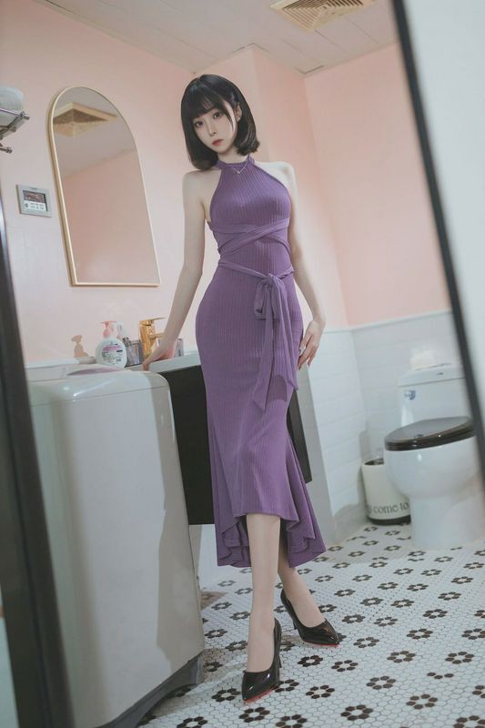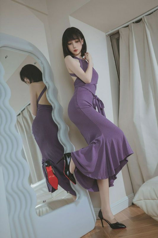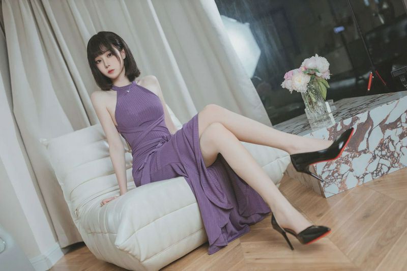 许岚LAN紫韵长裙搭配白嫩美腿性感写真