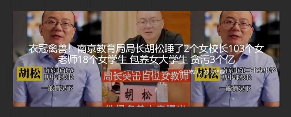 ★☆高端泄密☆★南京教育局局长胡松睡了2个女校长103个女老师18个女学生 包养女大学生 贪污3个亿[MP4/396MB]