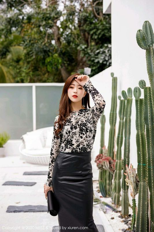 IMISS爱蜜社VOL.508杨紫嫣Cynthia印花衬衫与黑色皮裙系列